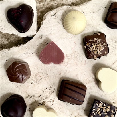 Dansk handgjord dessertchoklad. Hos oss är choklad mer än bara en söt frestelse – det är hjärtat av vårt företag. Vi är ytterst selektiva med våra råvaror, eftersom vi vet att äkta kvalitet kan smakas i varje tugga. Vårt sortiment erbjuder allt från intensiv mörk choklad med hög kakaohalt, krämig mjölkchoklad, exklusiv ruby-choklad och delikat vit choklad. Varje typ är noggrant utvald för att ge en oförglömlig smakupplevelse. Vi samarbetar med de bästa danska producenterna, och vår hemlagade Grand Cru choklad är gjord av premium kakaobönor från Sydamerika med en kakaohalt på över 70 %. Marsipanen tillverkas av söta mandlar från Italien och Spanien, medan nougaten kombinerar äkta hasselnötter och kakaosmör för en utsökt smak.