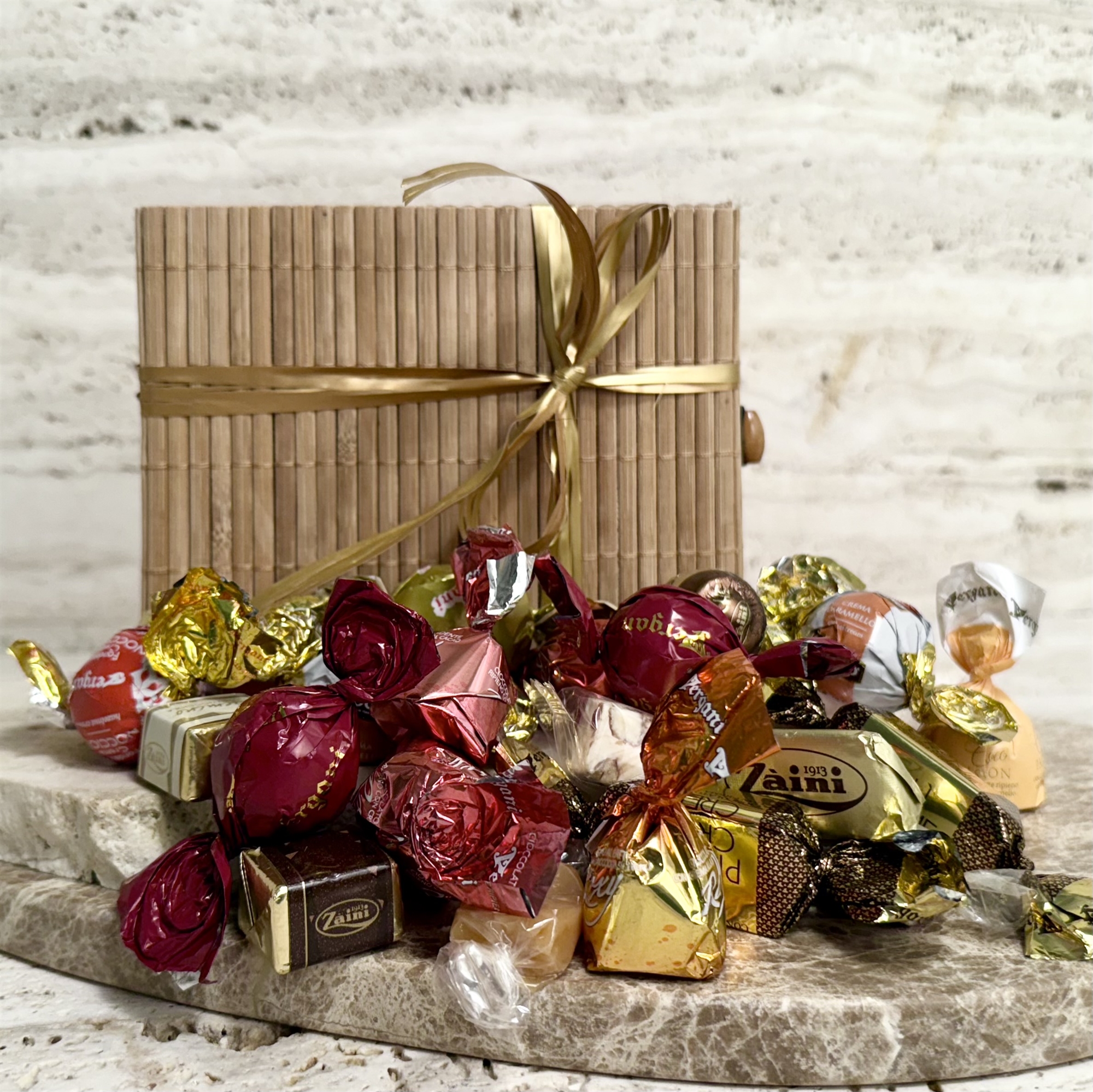 Lyxig chokladblandning 300 gram i naturfärgad bambulåda