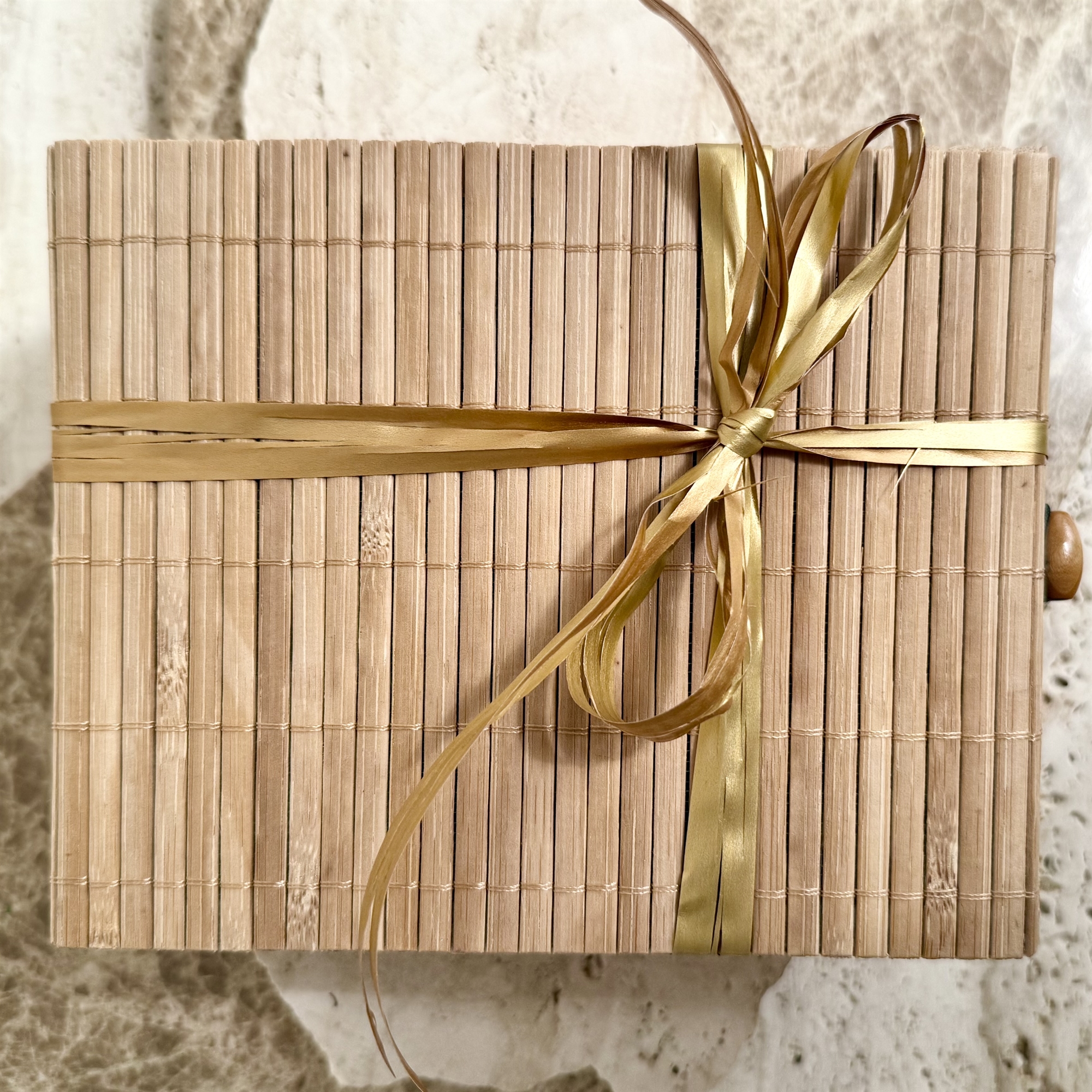 Den fina bambulådan i hållbar design är inte bara vacker, utan också återanvändbar, vilket gör den till en idealisk gåva för speciella tillfällen. Välj vår lyxiga chokladblandning för att uppleva utsökt smak, packad i en vacker och miljövänlig låda.