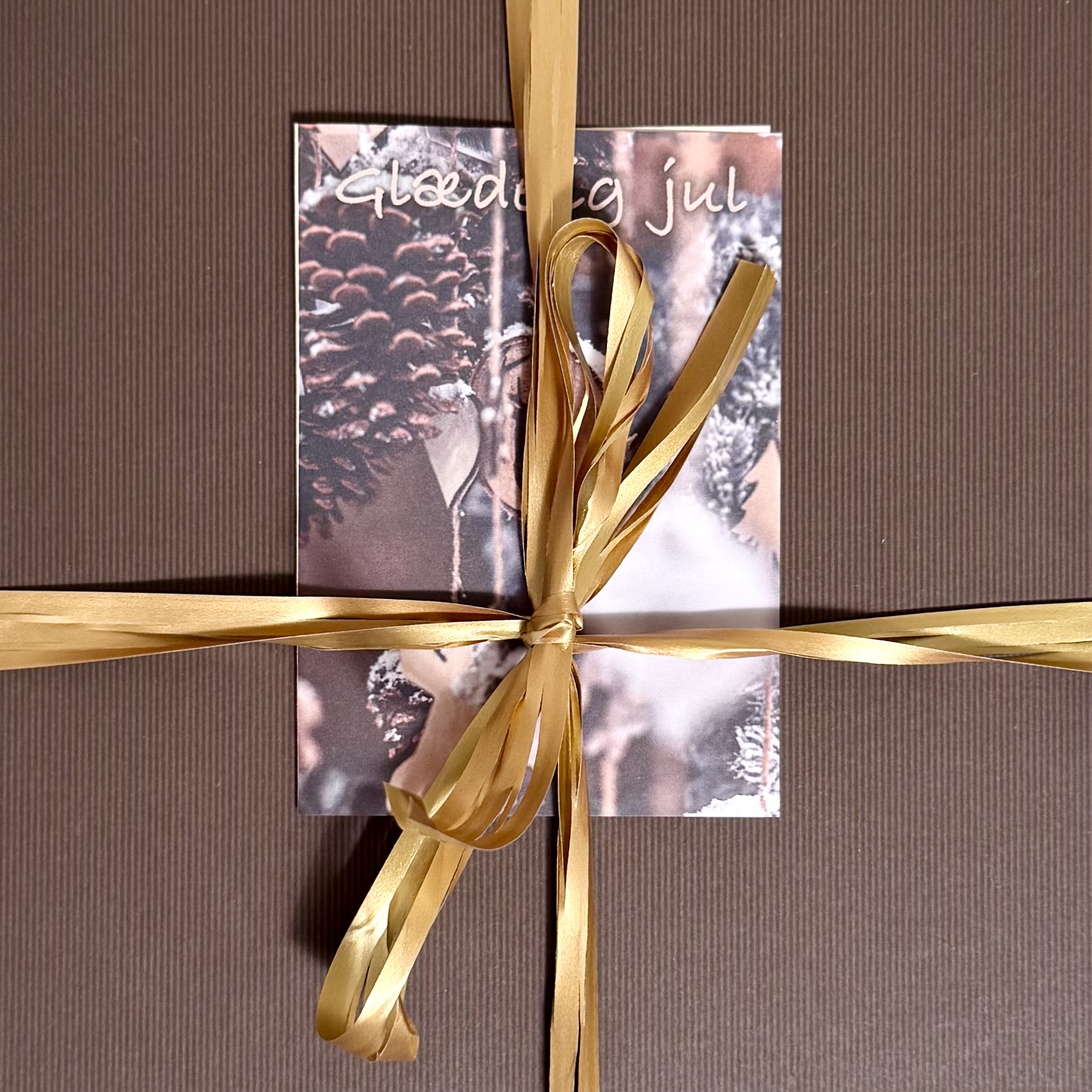 Rustik brun kartongask med hållbart pappersband.