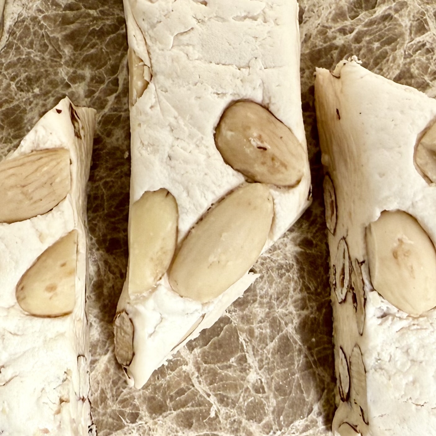 • Nougatstång med mandlar – mjuk nougat med krispiga mandlar.