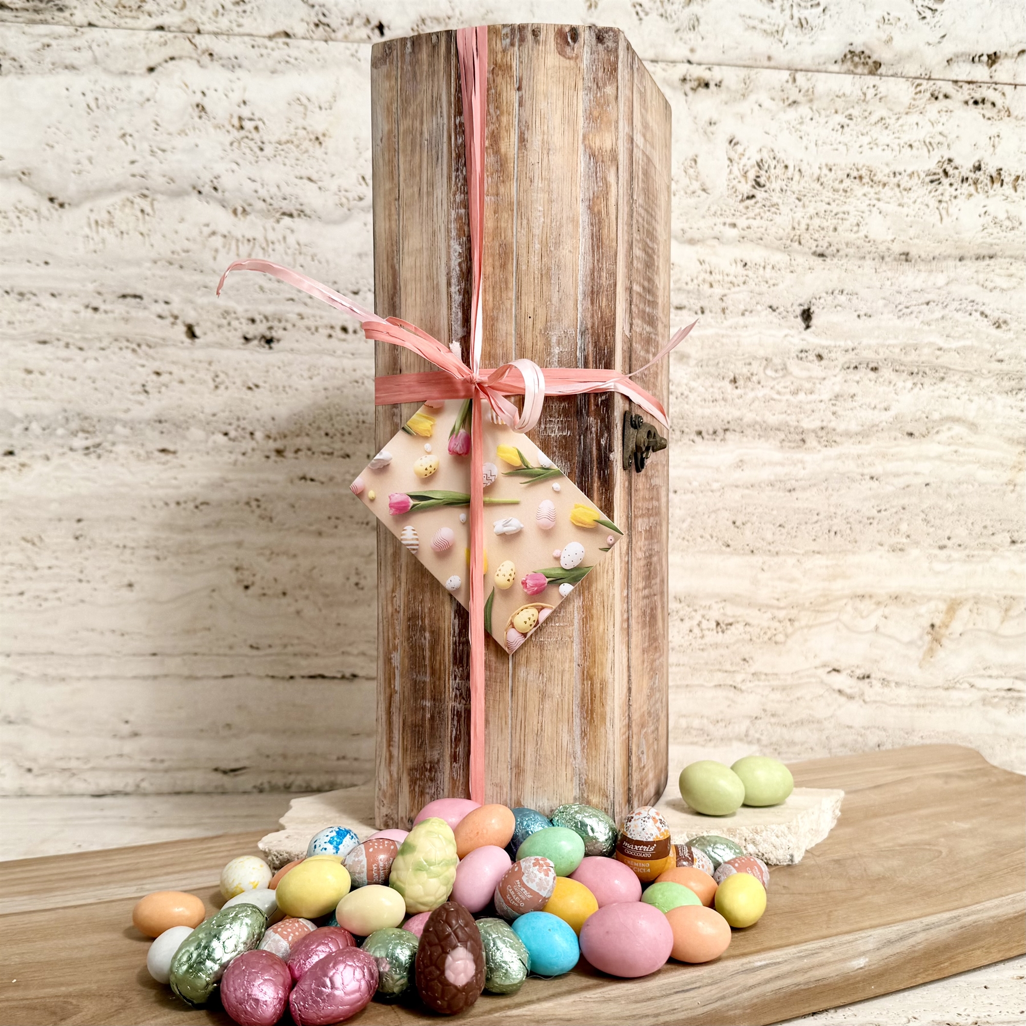 Handgjord Bali skattkista med 1500 gram av vår Lyxig Påskeblanding som är en av våra absolut bästa produkter, förfinad genom många år för att säkerställa en utsökt smakupplevelse. Blandningen innehåller ca.15 varianter av chokladpåskägg, noggrant utvalda från våra exklusiva leverantörer i Italien, Belgien och Danmark. Vi kompromissar aldrig med kvaliteten och varje enskilt påskägg är handplockat för sin unika smak och kvalitet.