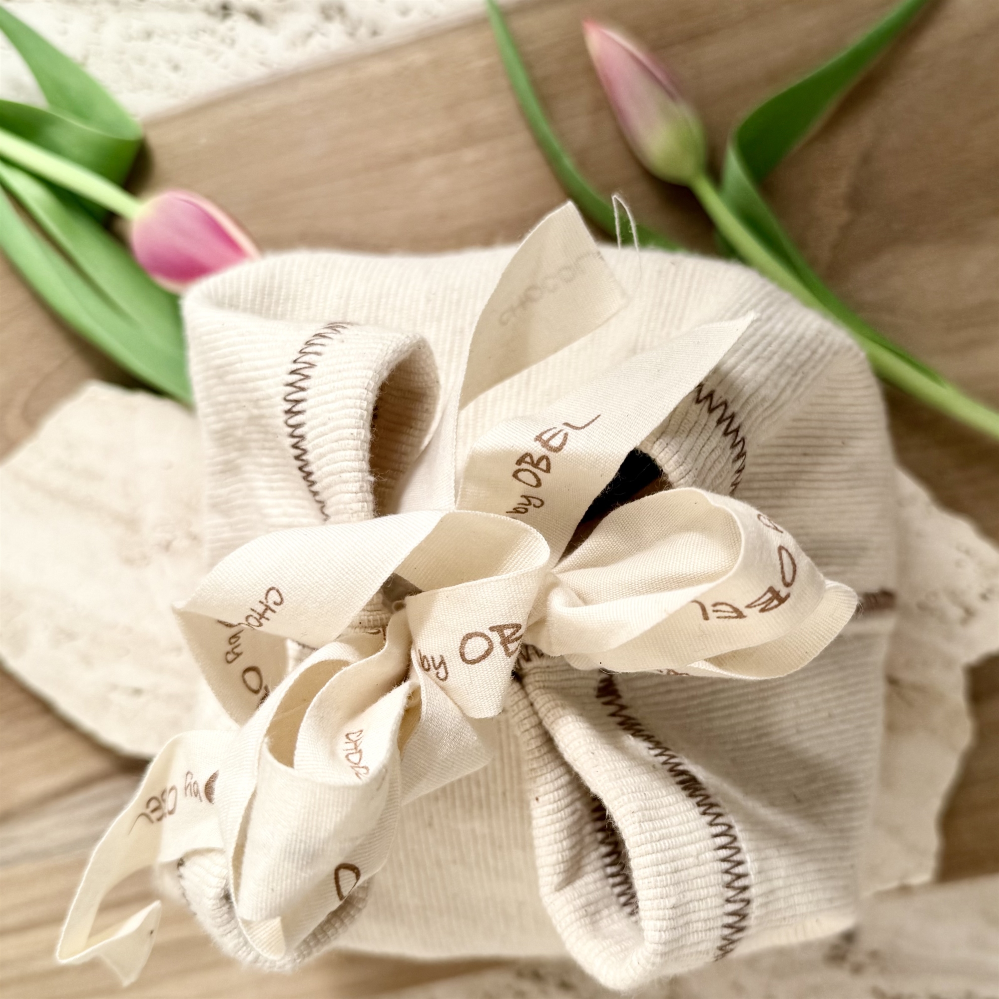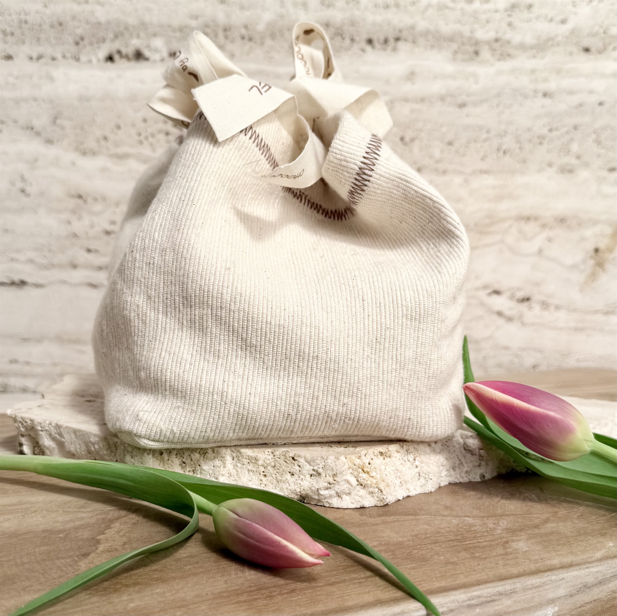 Bomulls förvaringspåse med band 12x12x13 cm.