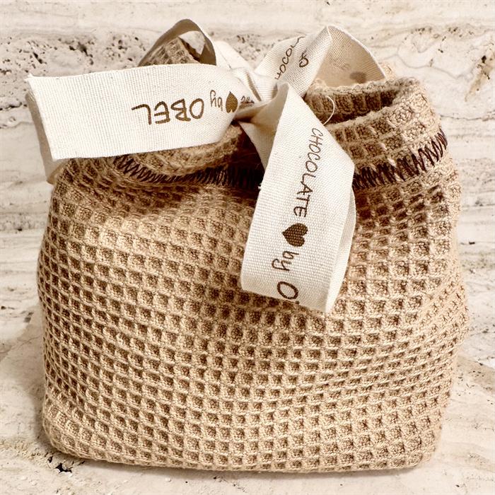 Våffelvävd bomullspåse med band 12x12x13 cm.