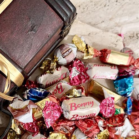 Skattkista fylld med 1000 gram lyxig chokladblandningSkattkista fylld med 1000 gram lyxig chokladblandning